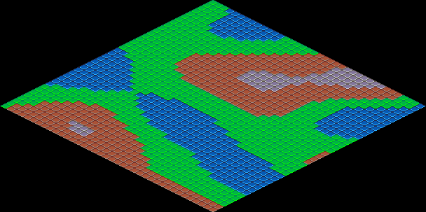 This time, I used Perlin/Simplex noise generation and a pseudo isometric view.